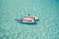 Arranged on two levels, these residences resemble grown-up Wendy Houses, with multiple decks and rooms boasting huge daybeds and wooden recliners, backgammon sets, DVDs, glass portholes so you can see stingrays and reef sharks beneath your feet, and vast wooden bathtubs built over the sea.